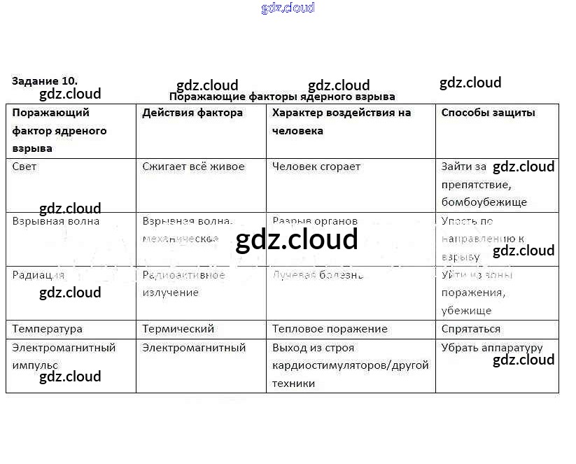 Ответ на задание 10 Рабочая тетрадь ОБЖ за 9 (девятый) класс Подолян 2018