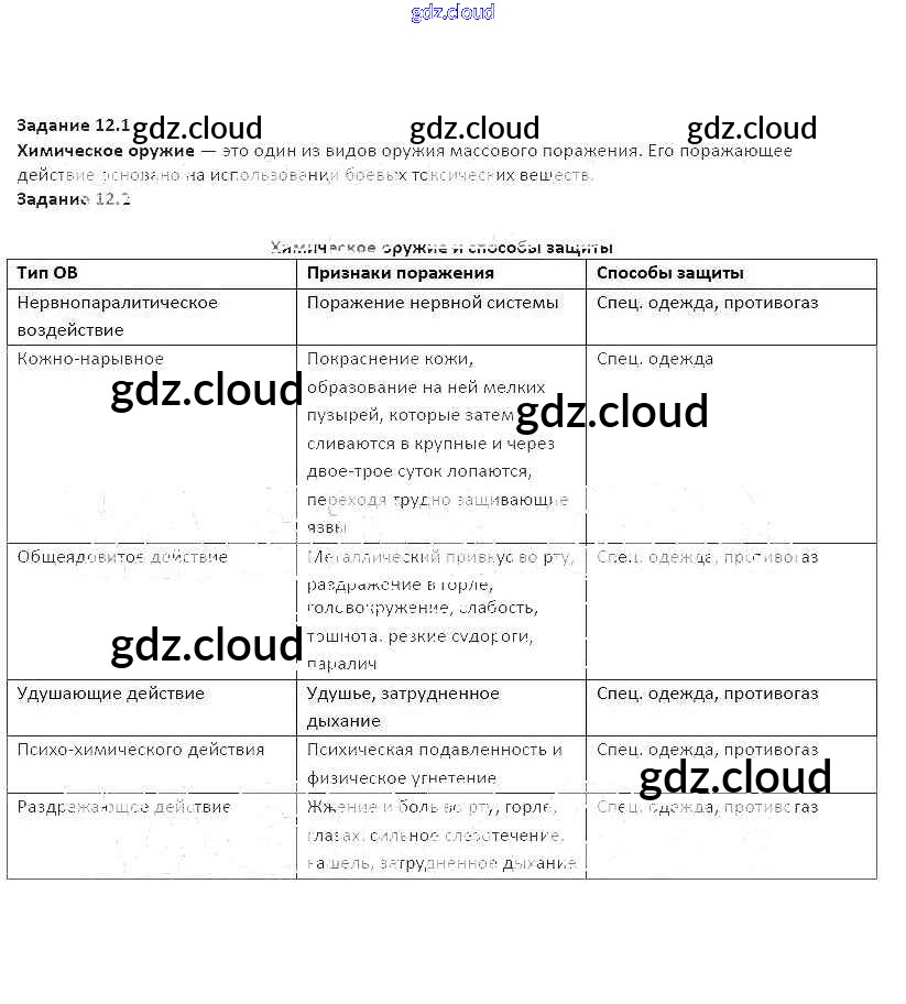 Ответ на задание 12 Рабочая тетрадь ОБЖ за 9 (девятый) класс Подолян 2018