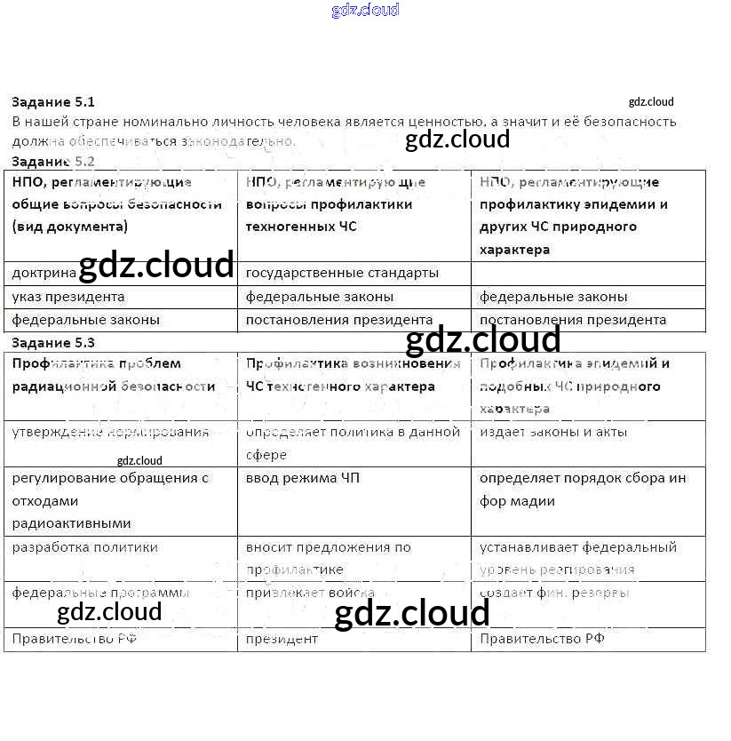 Ответ на задание 5 Рабочая тетрадь ОБЖ за 9 (девятый) класс Подолян 2018