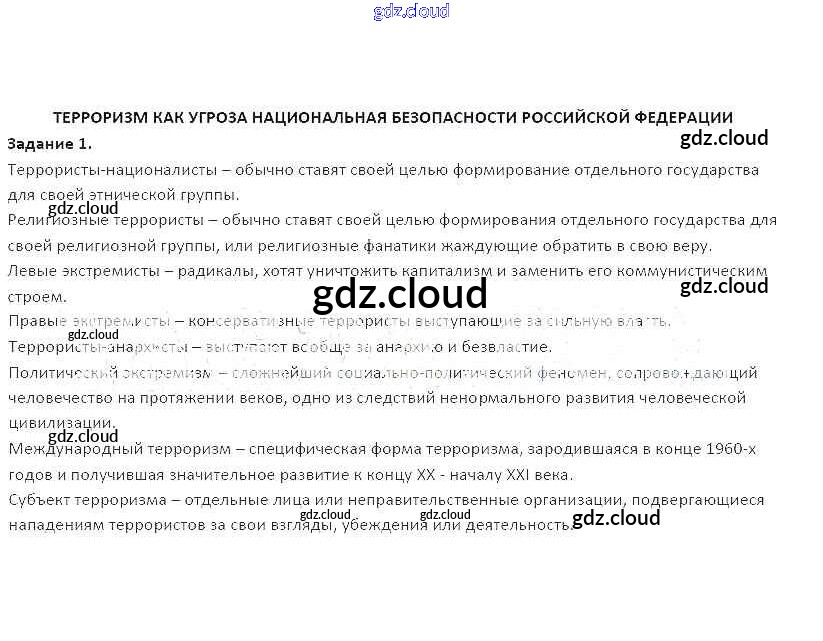 Ответы к главе 3. Терроризм как угроза национальной безопасности Российской Федерации по ОБЖ 9 класс Рабочая тетрадь Подолян Дрофа