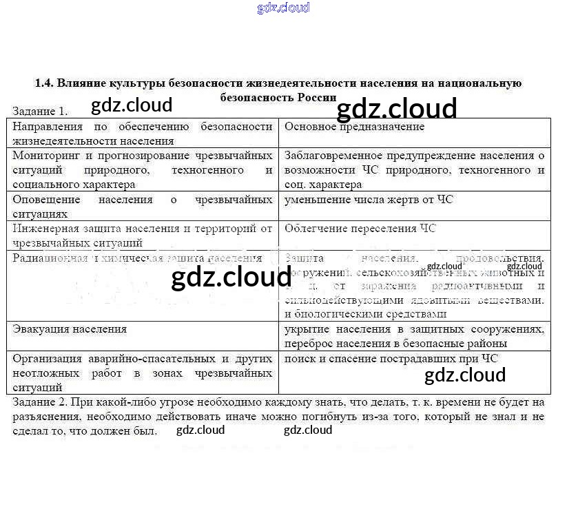 Ответ на задание 1.4 Рабочая тетрадь ОБЖ за 9 (девятый) класс Смирнов, Хренников, Маслов 2018 ФГОС онлайн и без номера телефона.
