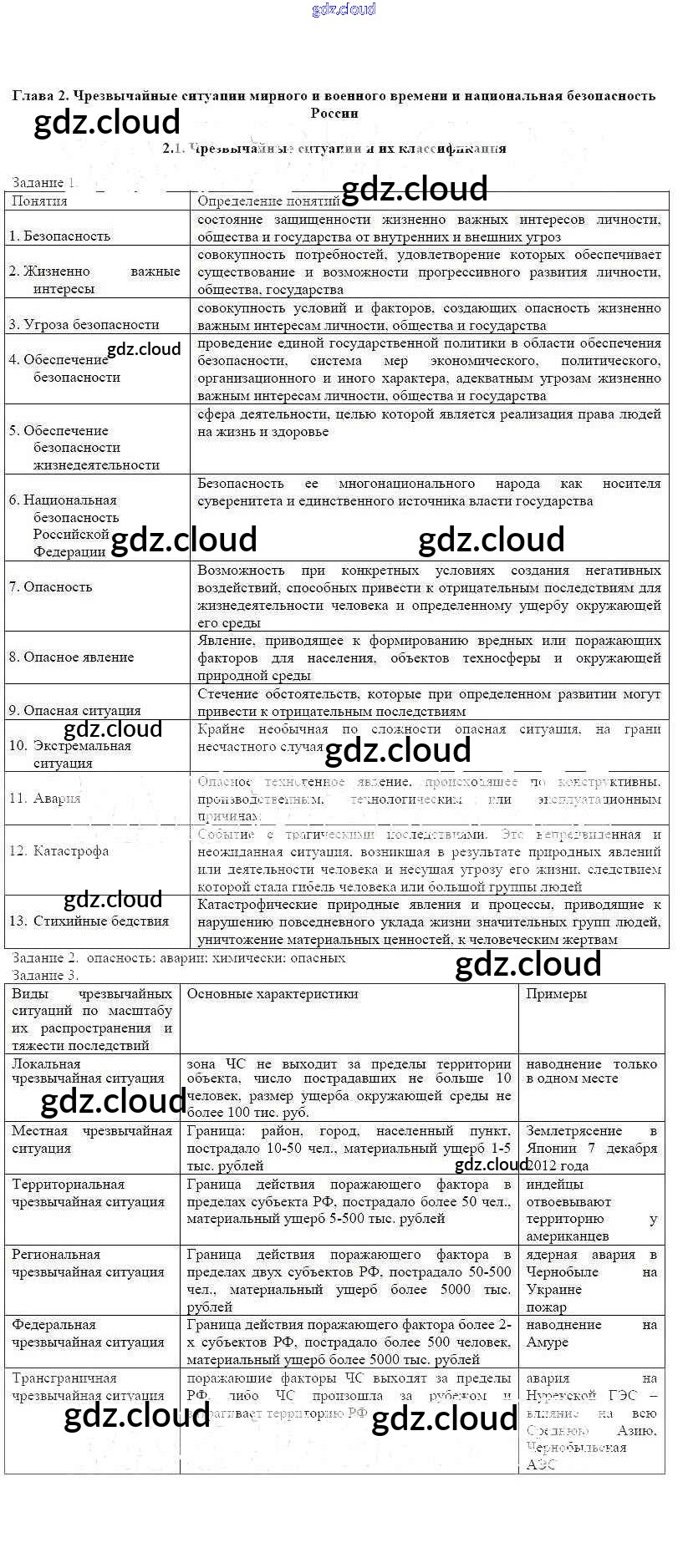 Ответ на задание 2.1 Рабочая тетрадь ОБЖ за 9 (девятый) класс Смирнов, Хренников, Маслов 2018 ФГОС онлайн и без номера телефона.