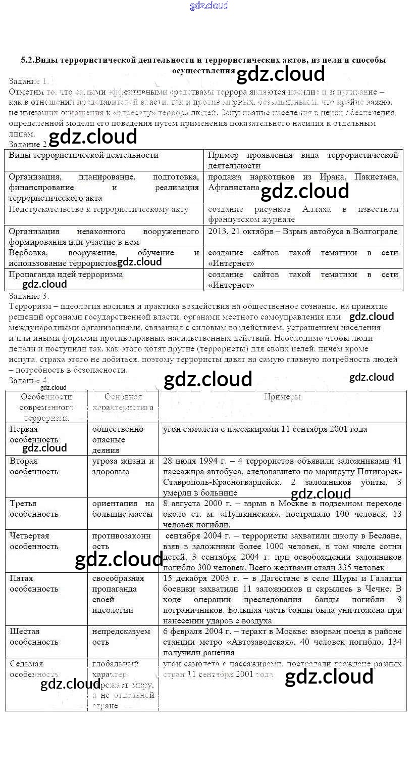 Ответ на задание 5.2 Рабочая тетрадь ОБЖ за 9 (девятый) класс Смирнов, Хренников, Маслов 2018 ФГОС онлайн и без номера телефона.