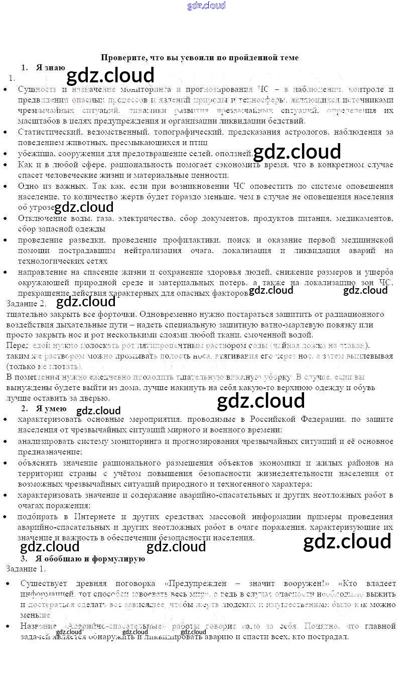 Ответ на задание Проверьте свои знания Рабочая тетрадь ОБЖ за 9 (девятый) класс Смирнов, Хренников, Маслов 2018