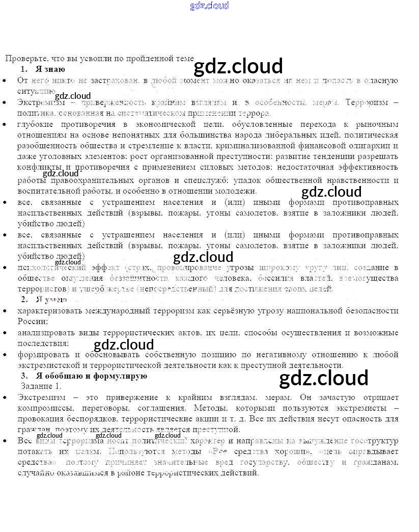 Ответ на задание Проверьте свои знания Рабочая тетрадь ОБЖ за 9 (девятый) класс Смирнов, Хренников, Маслов 2018