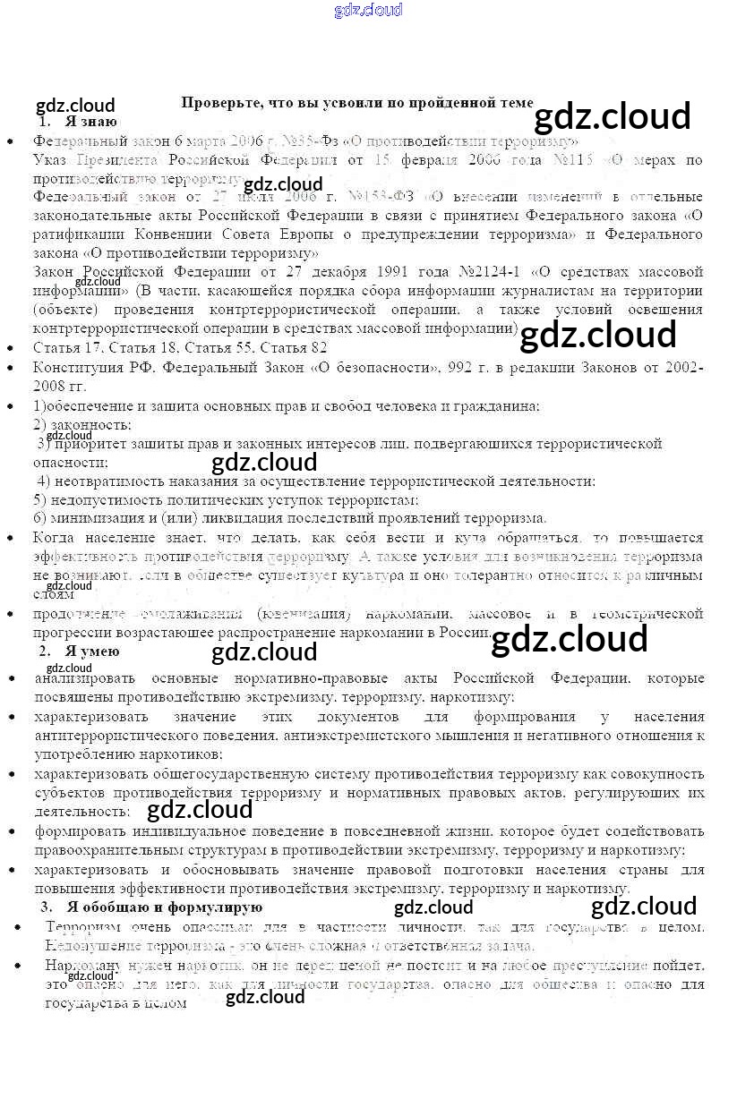 Ответ на задание Проверьте свои знания Рабочая тетрадь ОБЖ за 9 (девятый) класс Смирнов, Хренников, Маслов 2018