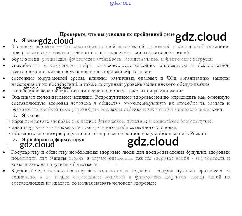Ответ на задание Проверьте свои знания Рабочая тетрадь ОБЖ за 9 (девятый) класс Смирнов, Хренников, Маслов 2018