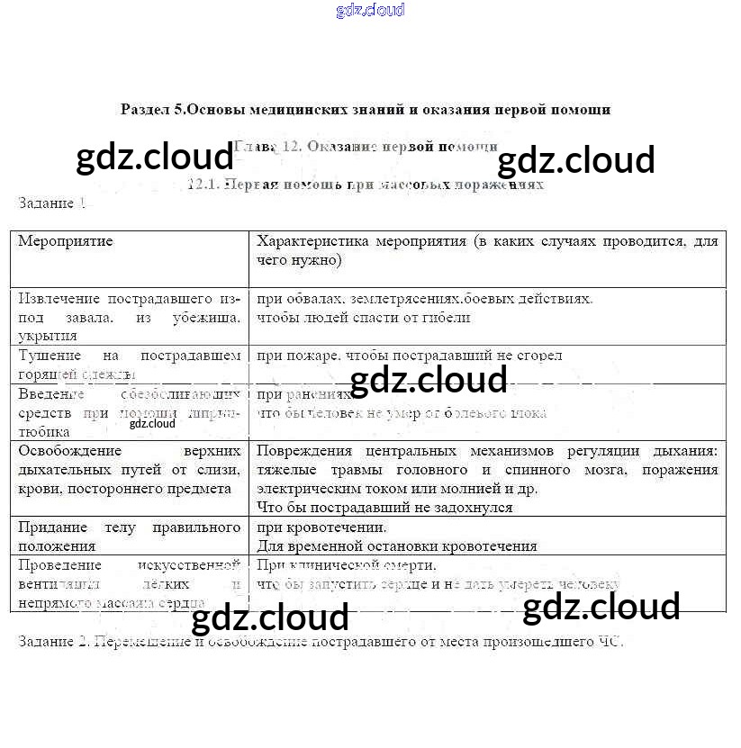 Ответы к главе 12 по ОБЖ 9 класс Рабочая тетрадь Смирнов Просвещение