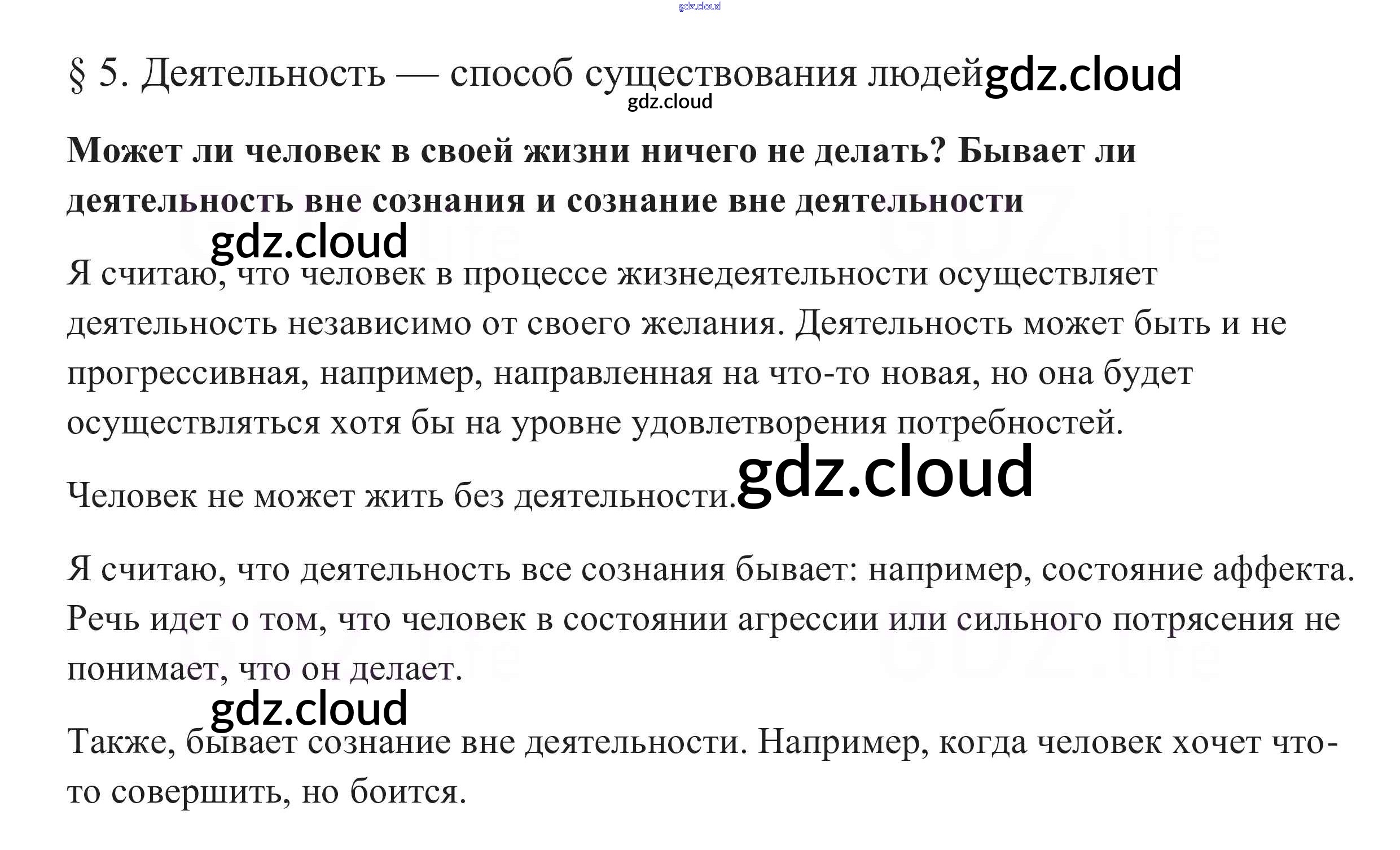 В начале параграфа §5. Деятельность - способ существования людей по Обществознанию 10 класс Учебник Боголюбов Базовый уровень Просвещение