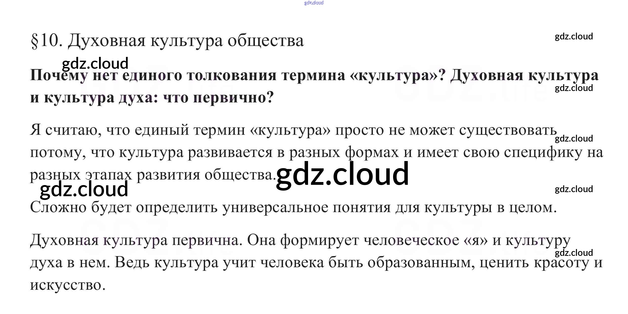 В начале параграфа §10. Духовная культура общества по Обществознанию 10 класс Учебник Боголюбов Базовый уровень Просвещение