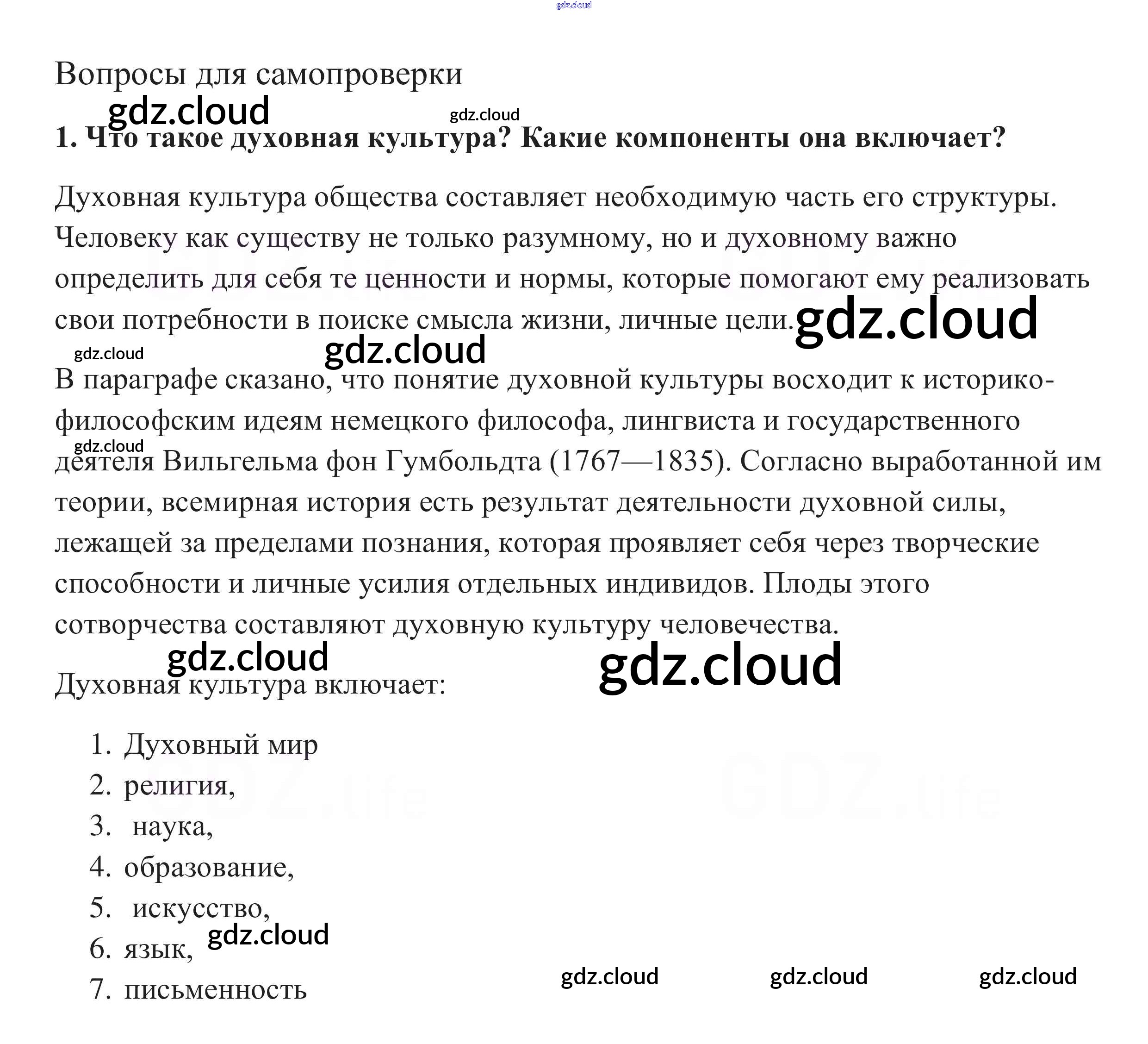 Вопросы для самопроверки §10. Духовная культура общества по Обществознанию 10 класс Учебник Боголюбов Базовый уровень Просвещение