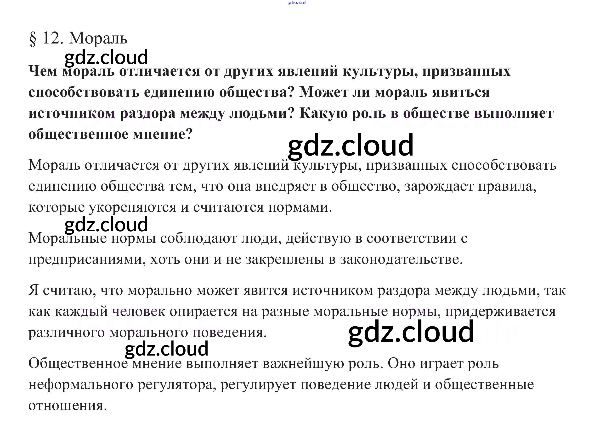 В начале параграфа §12. Мораль по Обществознанию 10 класс Учебник Боголюбов Базовый уровень Просвещение