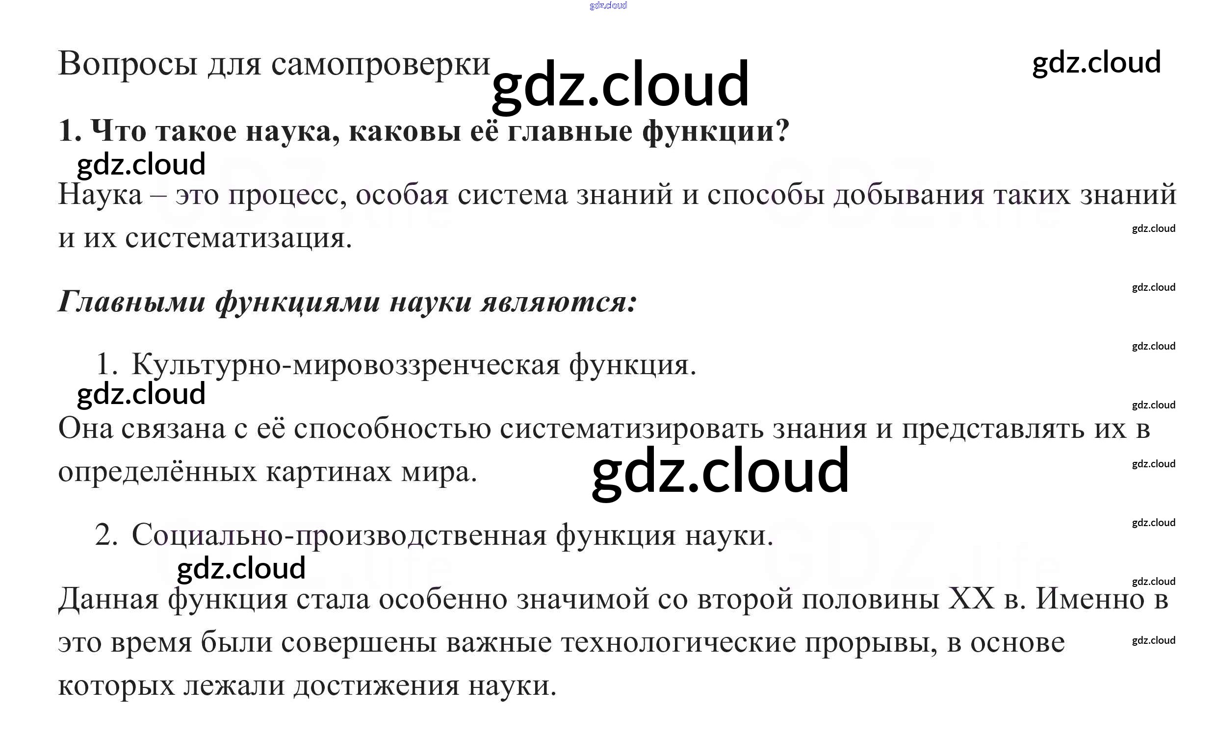 Вопросы для самопроверки §13. Наука и образование по Обществознанию 10 класс Учебник Боголюбов Базовый уровень Просвещение