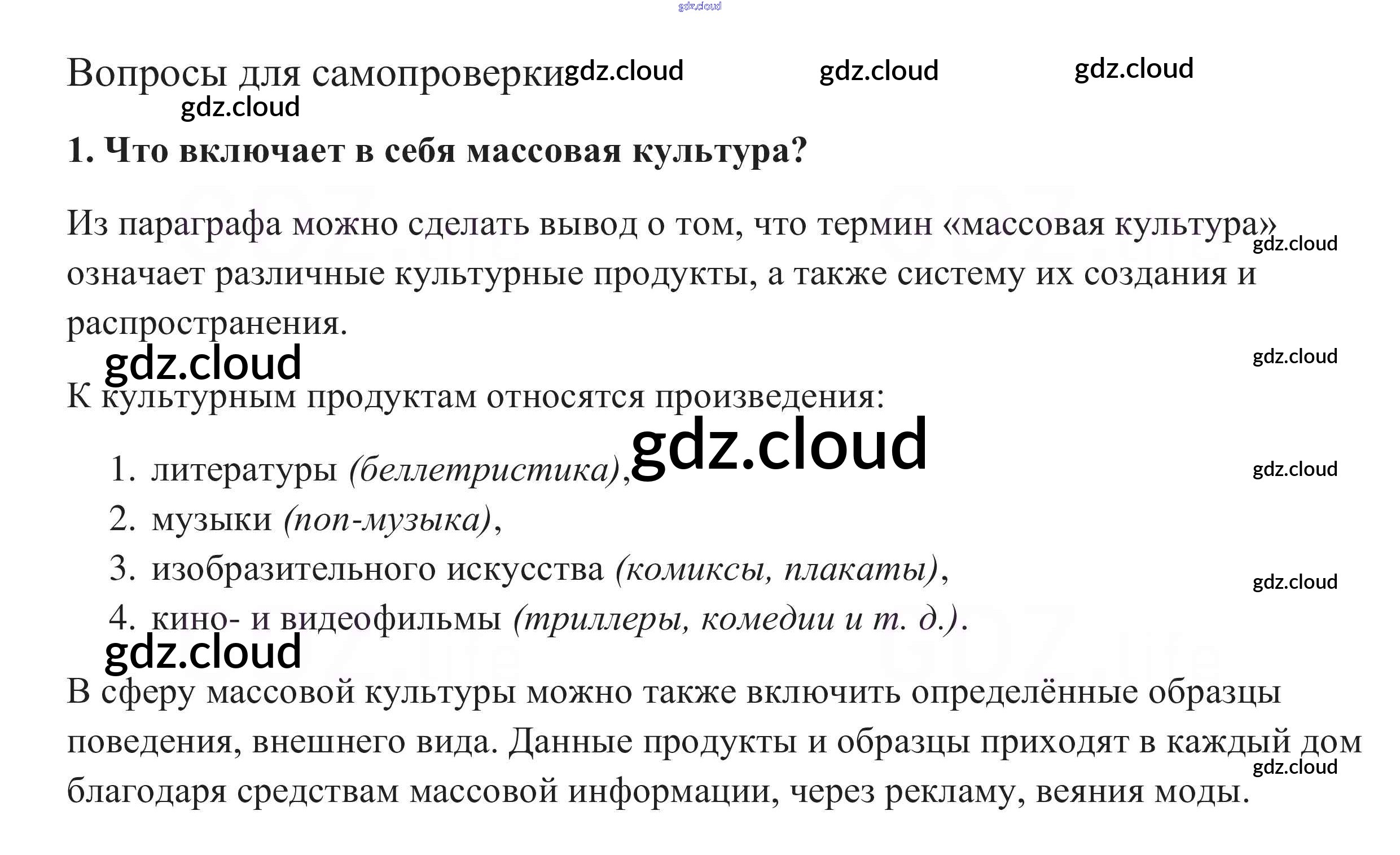 Вопросы для самопроверки §16. Массовая культура по Обществознанию 10 класс Учебник Боголюбов Базовый уровень Просвещение