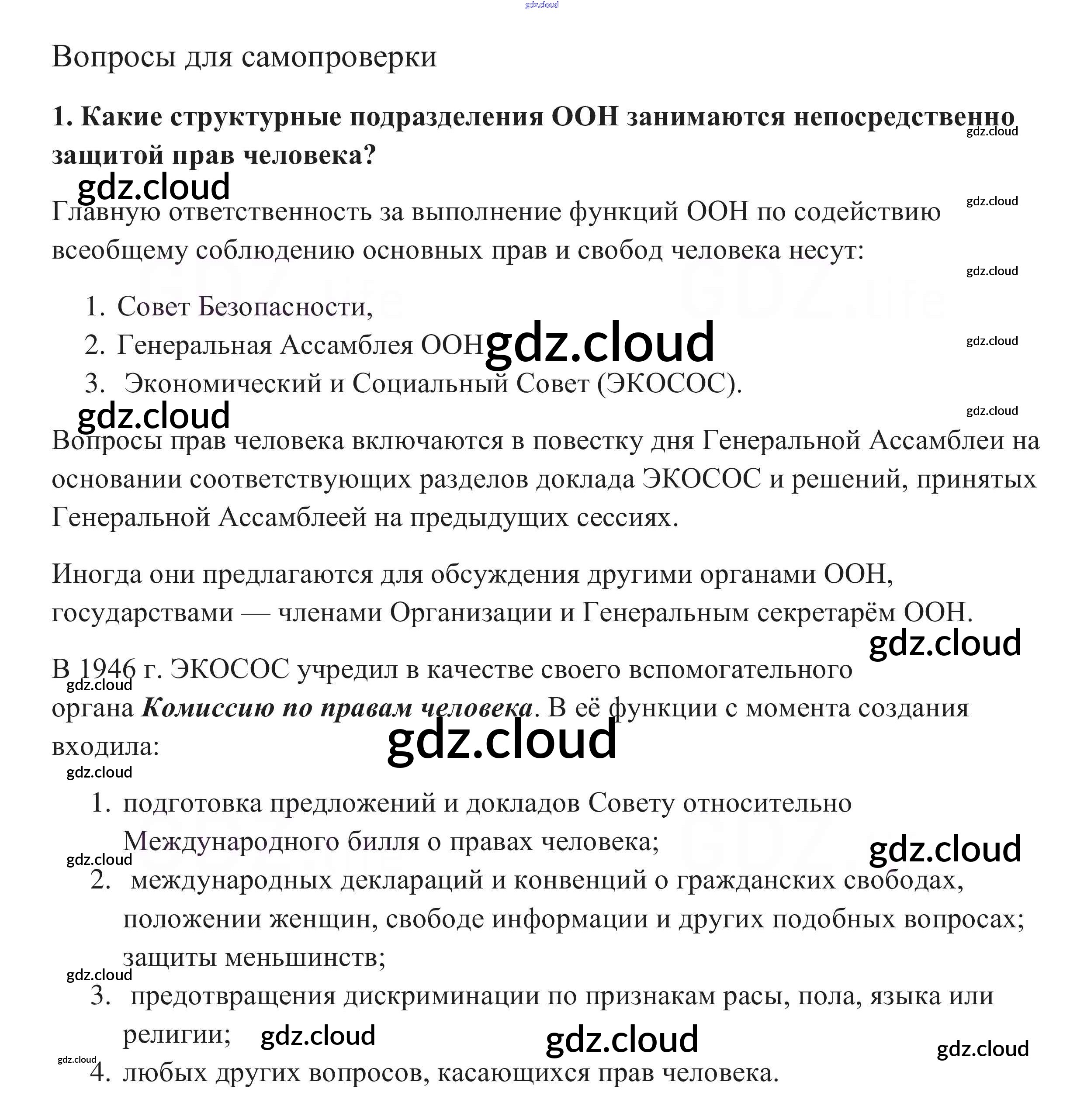 Вопросы для самопроверки §29. Международная защита прав человека по Обществознанию 10 класс Учебник Боголюбов Базовый уровень Просвещение