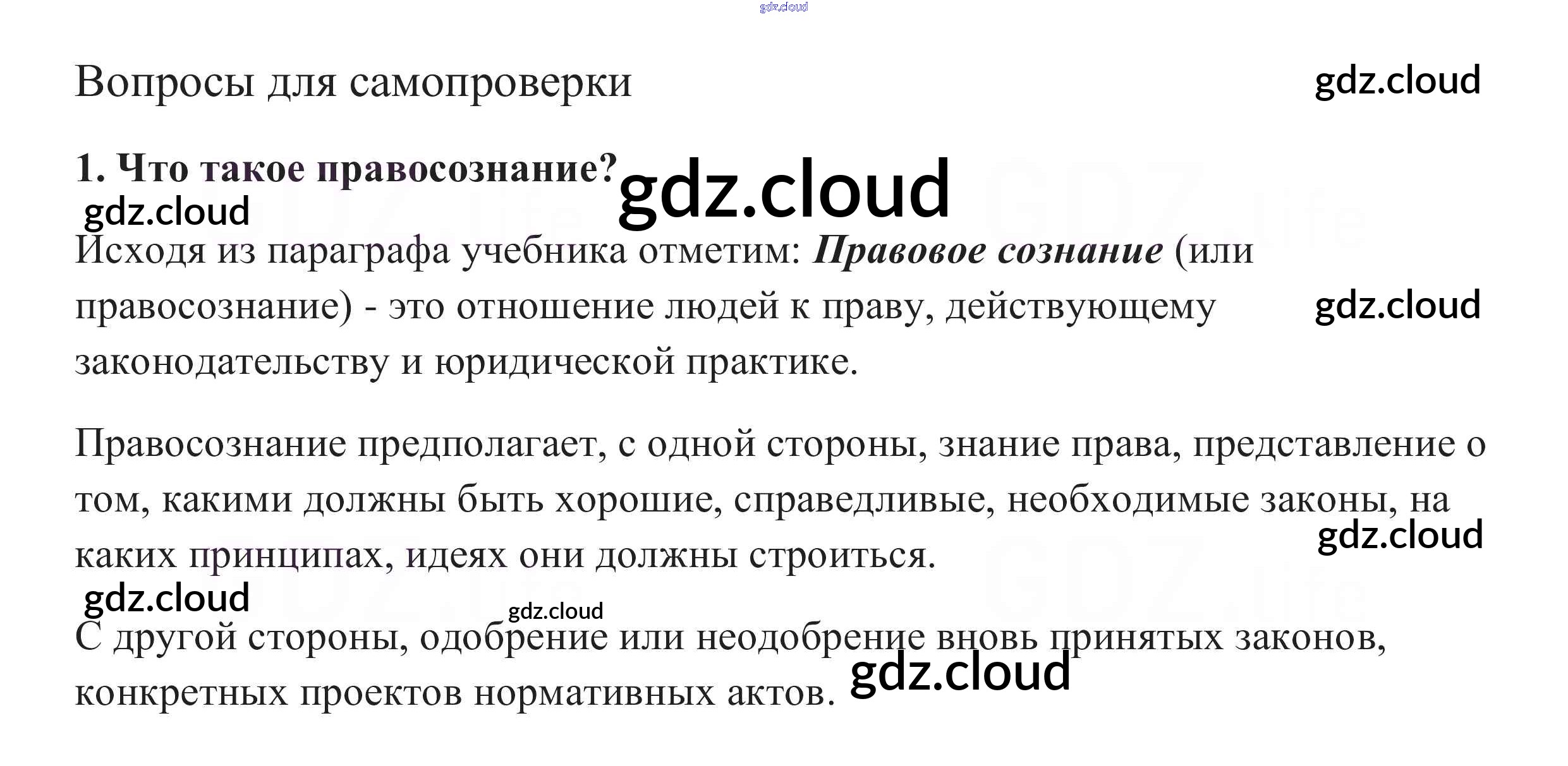 Вопросы для самопроверки §21. Предпосылки правомерного поведения по Обществознанию 10 класс Учебник Боголюбов Базовый уровень Просвещение