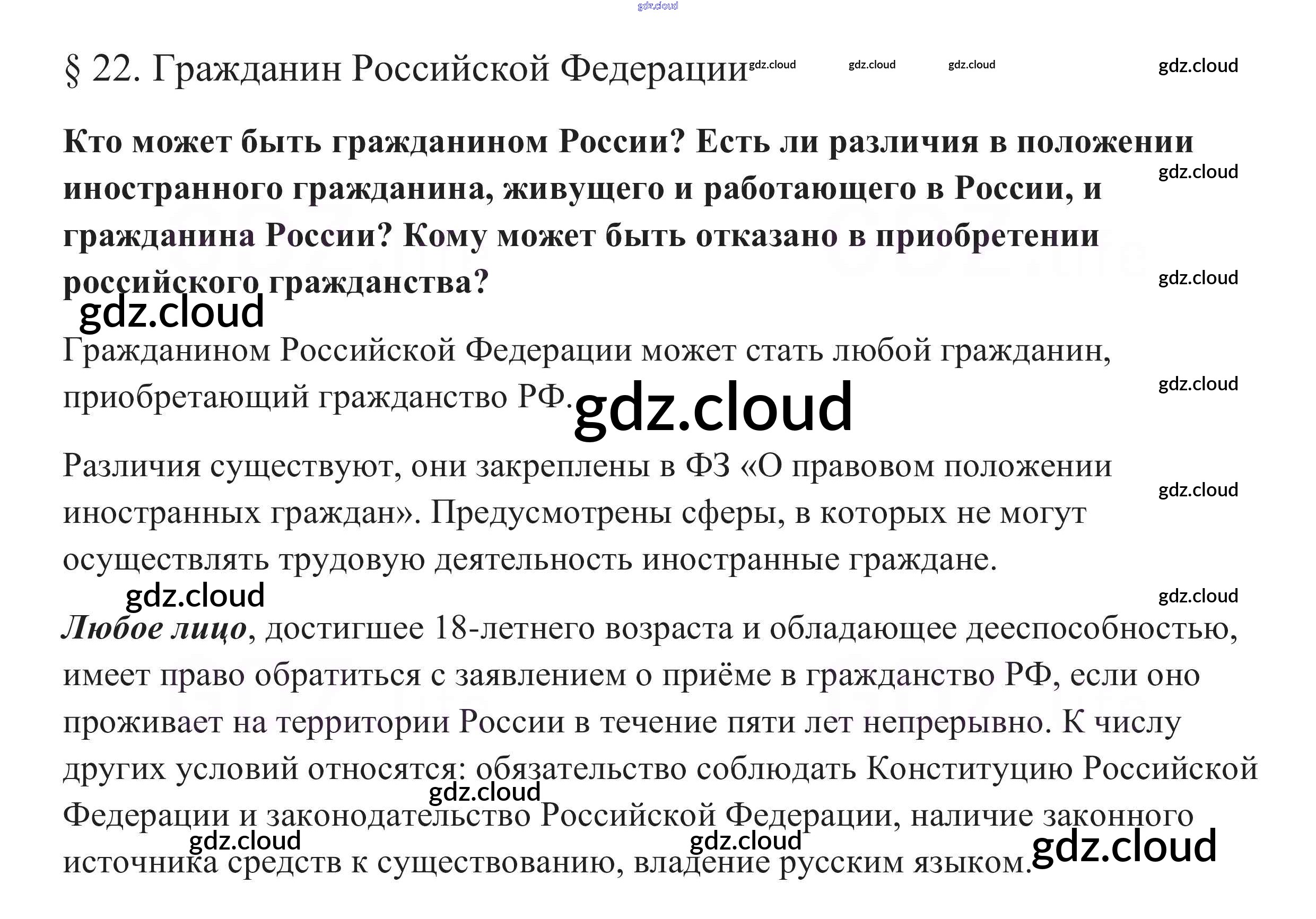 В начале параграфа §22. Гражданин Российской Федерации по Обществознанию 10 класс Учебник Боголюбов Базовый уровень Просвещение