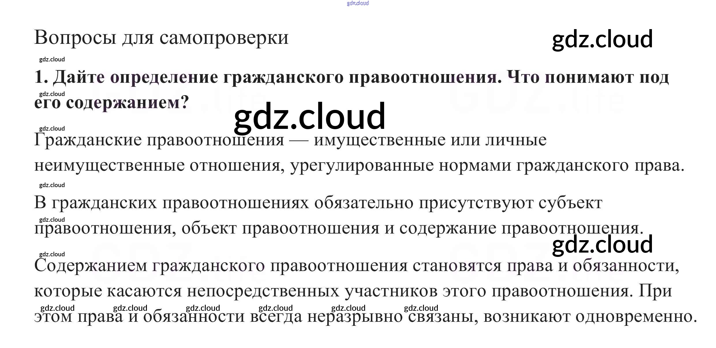 Вопросы для самопроверки §23. Гражданское право по Обществознанию 10 класс Учебник Боголюбов Базовый уровень Просвещение
