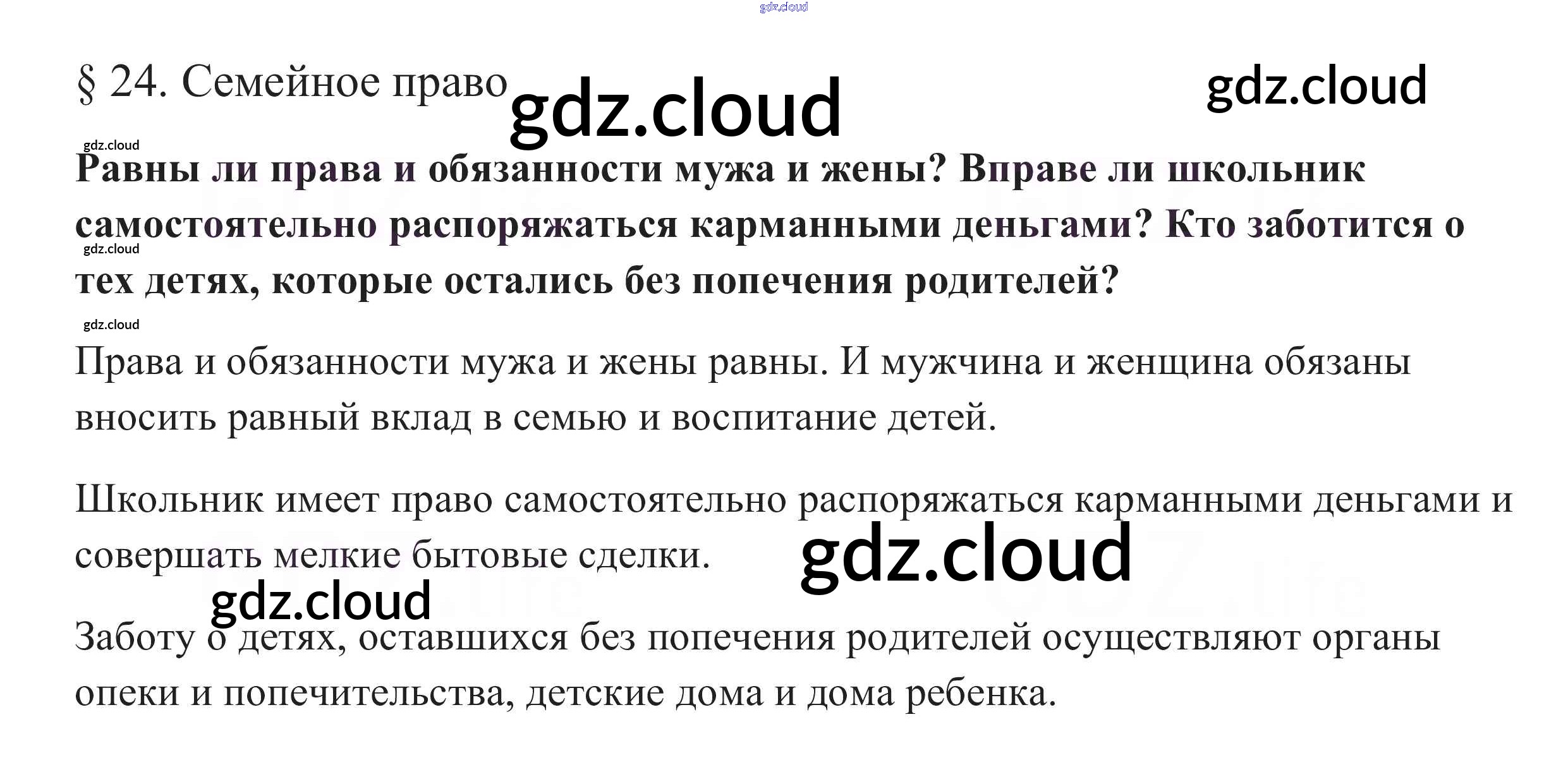 В начале параграфа §24. Семейное право по Обществознанию 10 класс Учебник Боголюбов Базовый уровень Просвещение