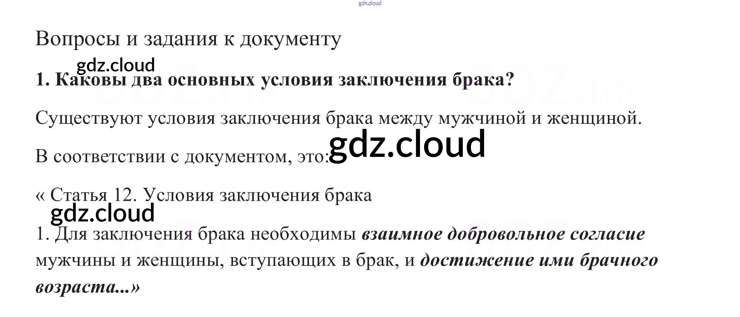 Вопросы и задания к документу §24. Семейное право по Обществознанию 10 класс Учебник Боголюбов Базовый уровень Просвещение