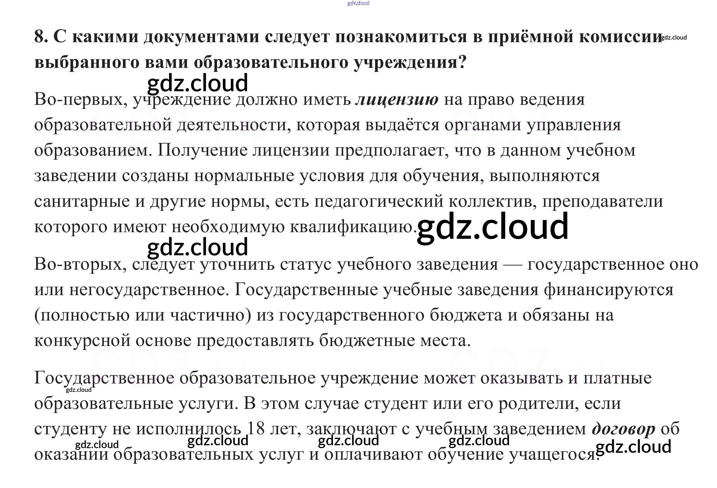 Ответ на задание 8 Учебник Обществознание за 10 (десятый) класс Боголюбов, Аверьянов, Белявский, Иванова Базовый уровень 2015