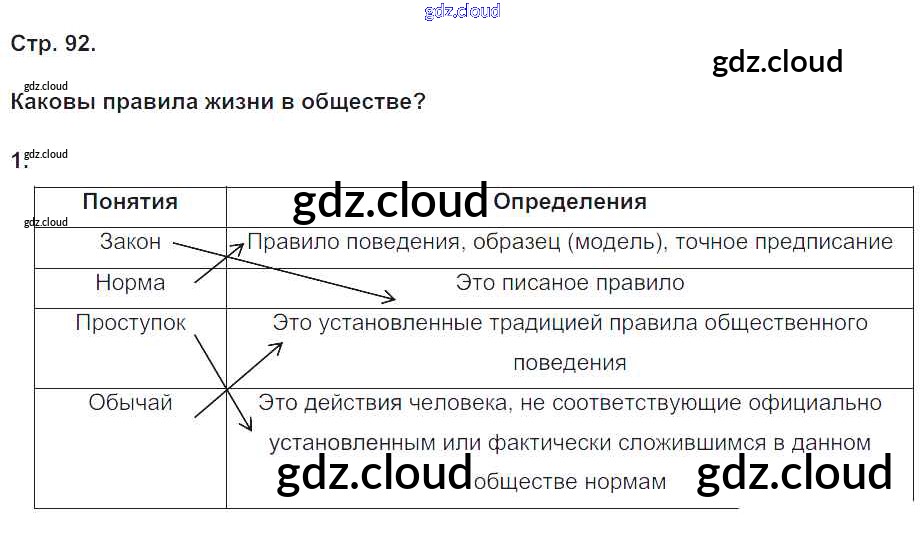 Ответ на задание стр. 92 Рабочая тетрадь Обществознание за 5 (пятый) класс Болотина, Мишина Вертикаль 2019