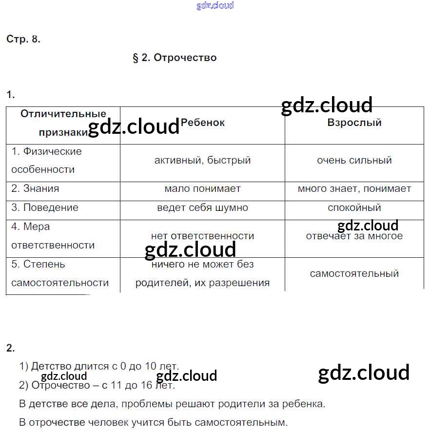 Ответ на задание 8 Рабочая тетрадь Обществознание за 5 (пятый) класс Иванова, Хотеенкова 2018