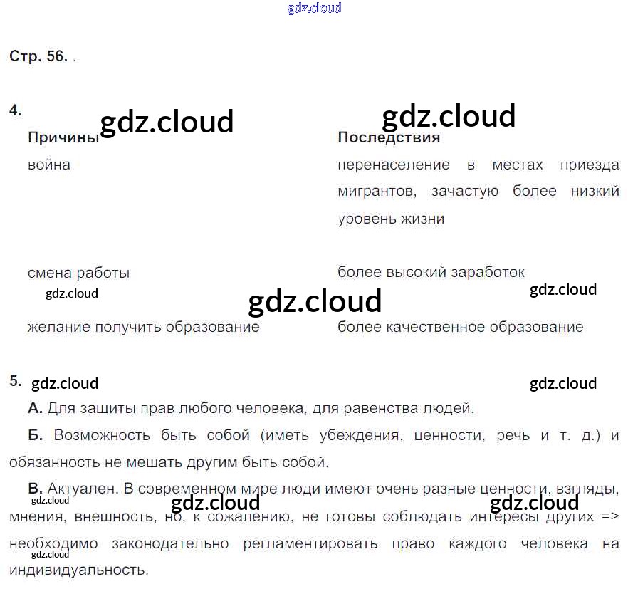 Ответ на задание 56 Рабочая тетрадь Обществознание за 5 (пятый) класс Хромова Инновационная школа 2016 ФГОС онлайн и без номера телефона.