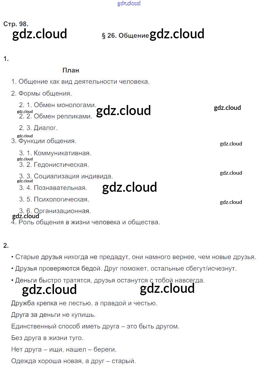 Ответ на задание 98 Рабочая тетрадь Обществознание за 5 (пятый) класс Хромова Инновационная школа 2016 ФГОС онлайн и без номера телефона.