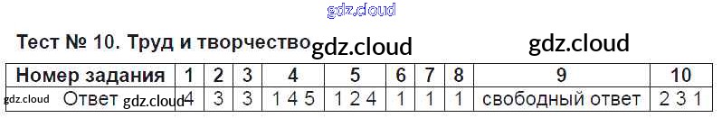 Ответ на задание Тест №10. Труд и творчество Тесты Обществознание за 5 (пятый) класс Лебедева УМК 2016