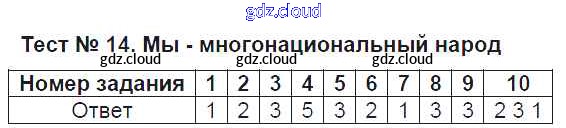 Ответ на задание Тест №14. Мы - многонациональный народ Тесты Обществознание за 5 (пятый) класс Лебедева УМК 2016