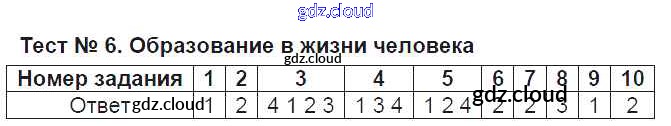 Ответ на задание Тест №6. Образование в жизни человека Тесты Обществознание за 5 (пятый) класс Лебедева УМК 2016