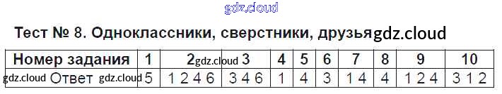 Ответ на задание Тест №8. Одноклассники, сверстники, друзья Тесты Обществознание за 5 (пятый) класс Лебедева УМК 2016