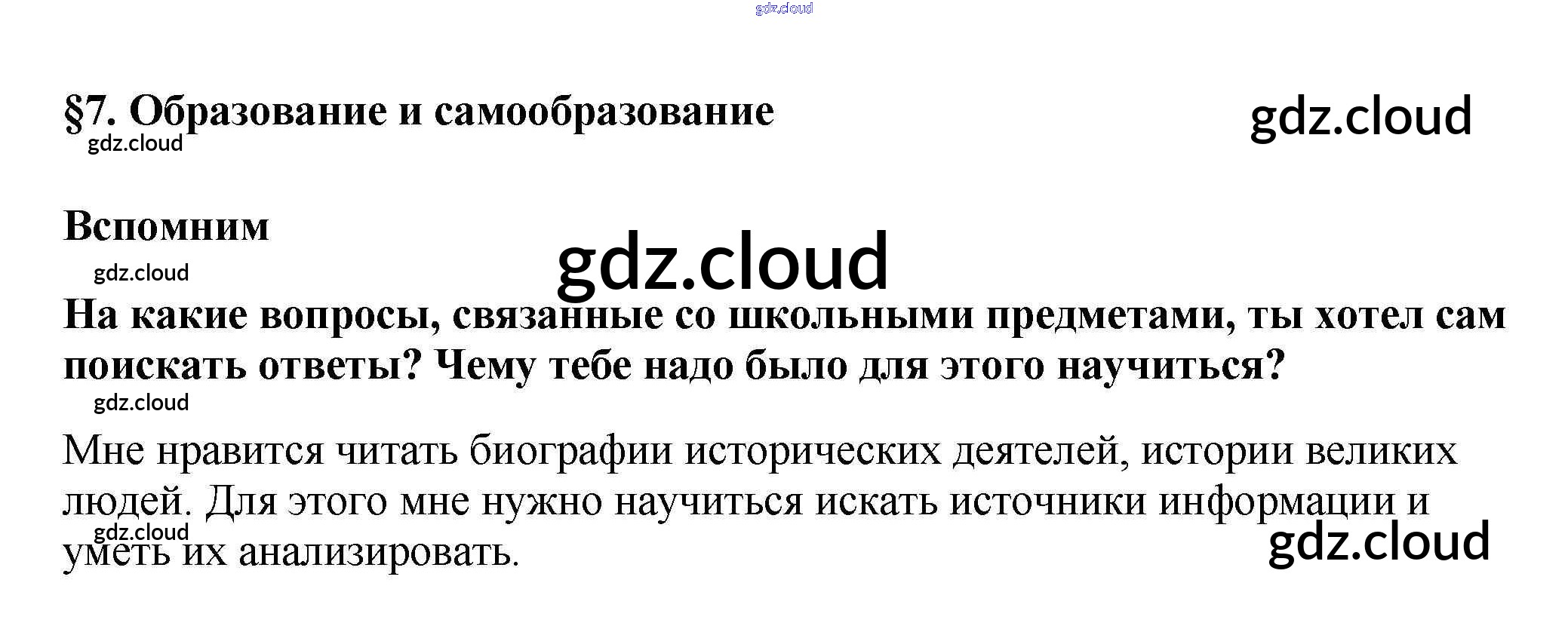 Вспомним Ответы к §7 по Обществознанию 5 класс Учебник Боголюбов Просвещение