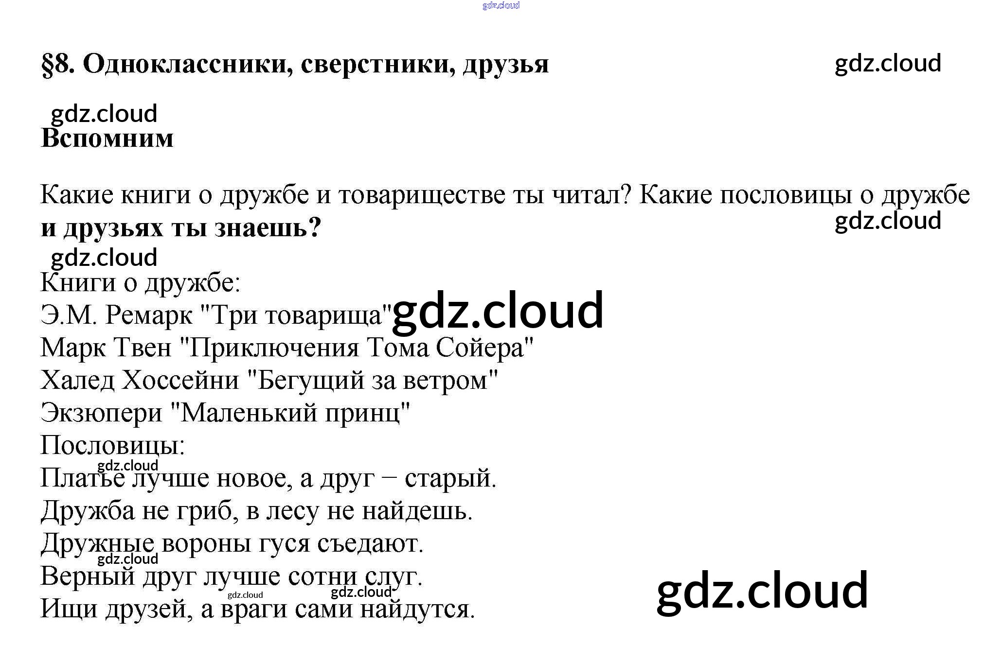 Вспомним Ответы к §8 по Обществознанию 5 класс Учебник Боголюбов Просвещение