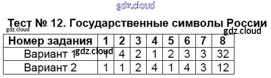 Ответ на задание Тест-12. Государственные символы России Контрольно-измерительные материалы (КИМ) Обществознание за 5 (пятый) класс Волкова 2017