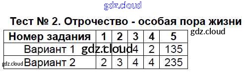 Ответ на задание Тест-2. Отрочество - особая пора жизни Контрольно-измерительные материалы (КИМ) Обществознание за 5 (пятый) класс Волкова 2017