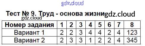 Ответ на задание Тест-9. Труд - основа жизни Контрольно-измерительные материалы (КИМ) Обществознание за 5 (пятый) класс Волкова 2017