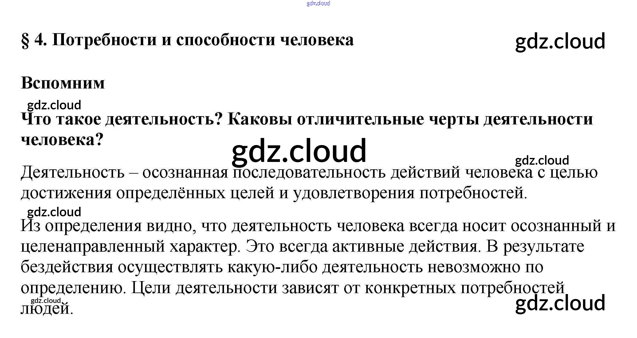 Вспомним §4. Потребности и способности человека по Обществознанию 6 класс Учебник Боголюбов Академический школьный учебник Просвещение, Просвещение