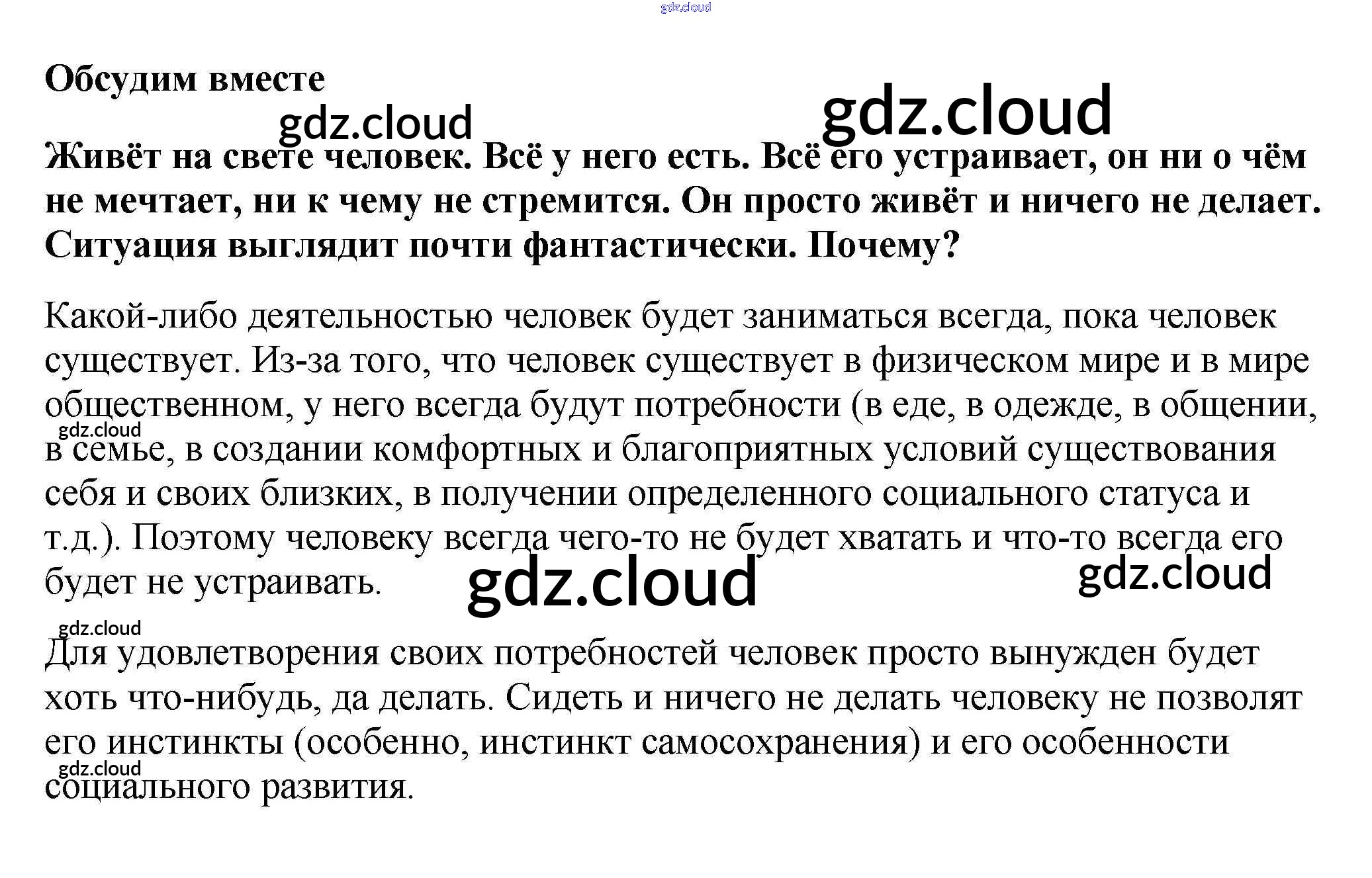 Обсудим вместе §4. Потребности и способности человека по Обществознанию 6 класс Учебник Боголюбов Академический школьный учебник Просвещение, Просвещение