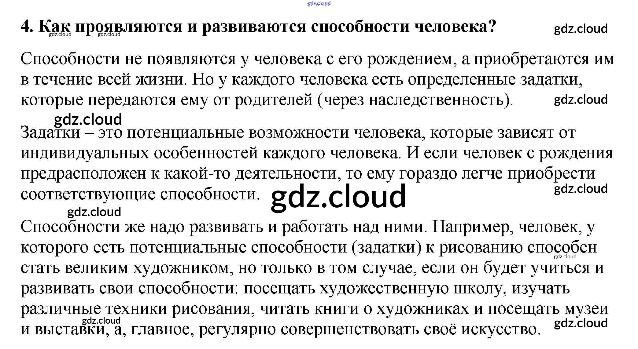 Ответ на задание 4 Учебник Обществознание за 6 (шестой) класс Боголюбов, Виноградова, Городецкая, Иванова, Лискова, Матвеев, Рутковская Академический школьный учебник 2016, 2020