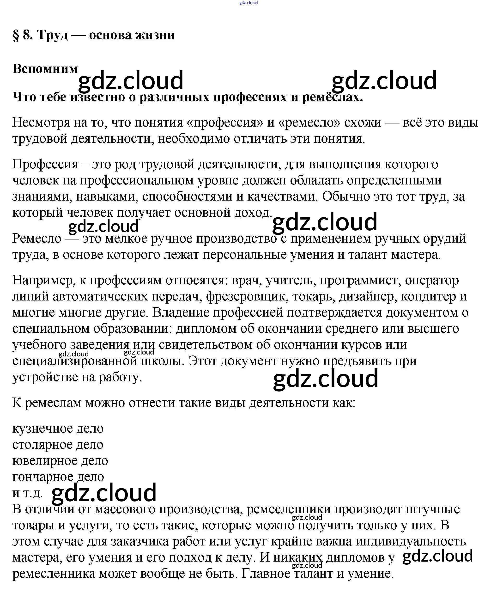 Вспомним §8. Труд — основа жизни по Обществознанию 6 класс Учебник Боголюбов Академический школьный учебник Просвещение, Просвещение