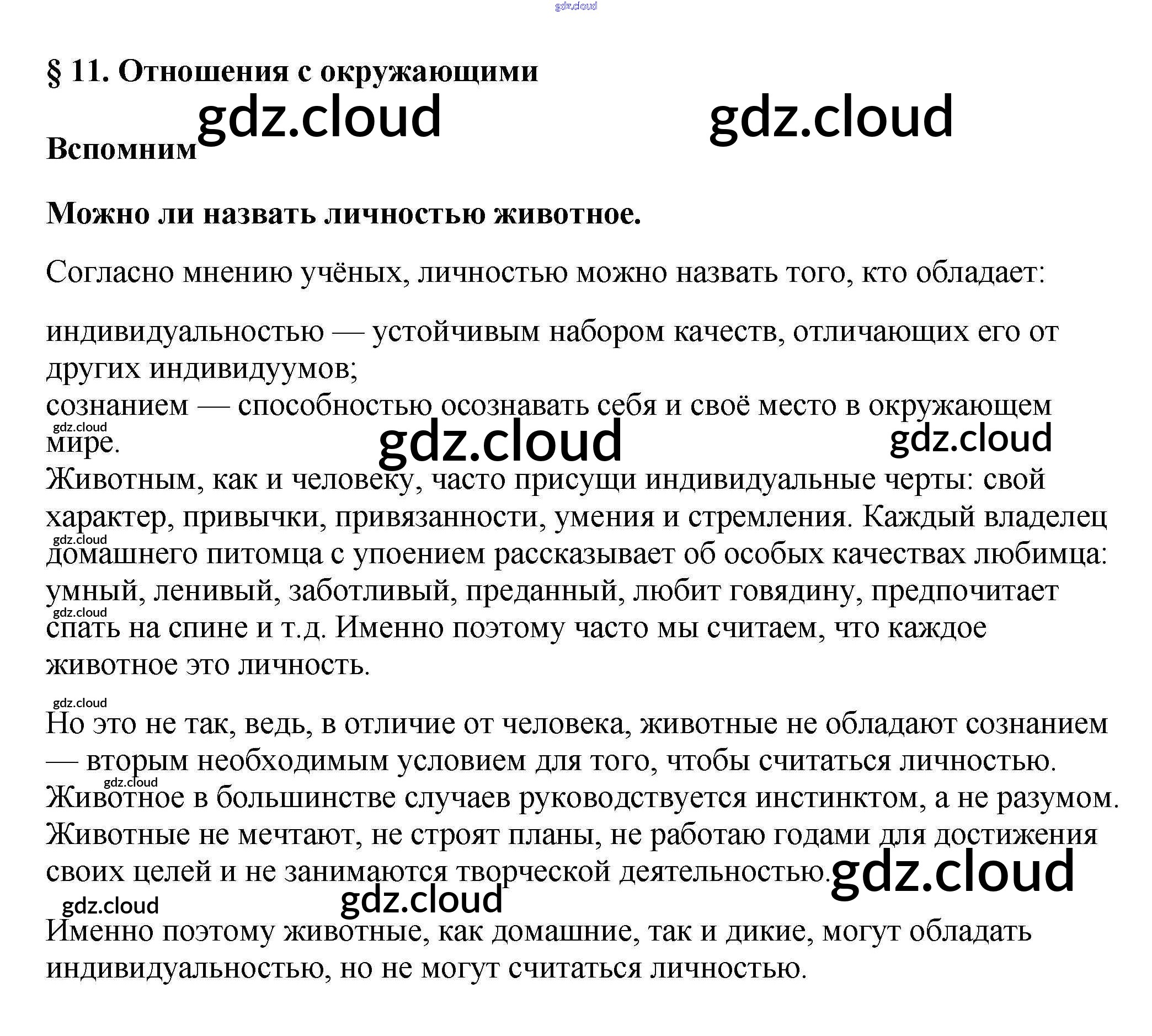 Вспомним §11. Отношения с окружающими по Обществознанию 6 класс Учебник Боголюбов Академический школьный учебник Просвещение, Просвещение
