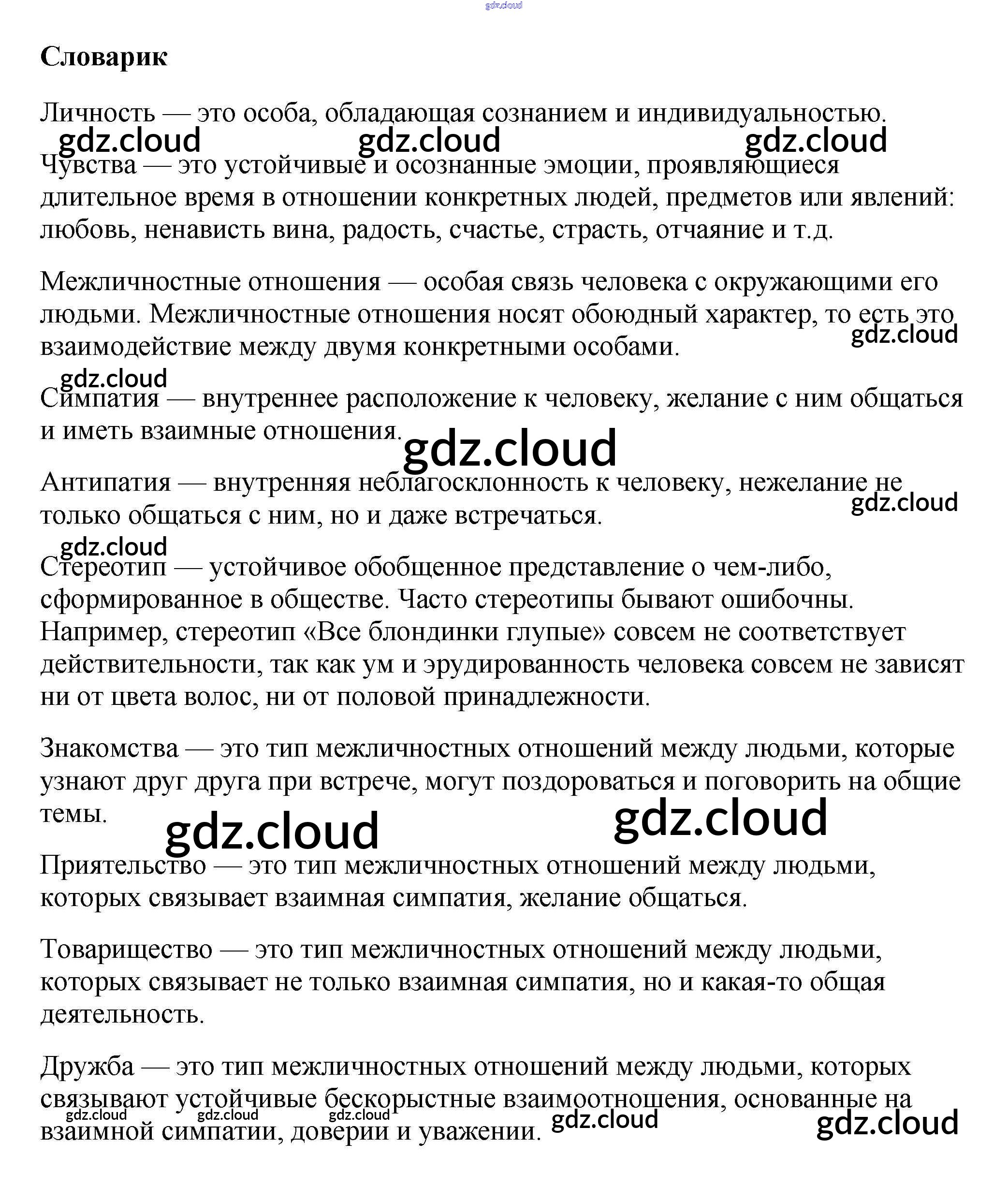 Словарик §11. Отношения с окружающими по Обществознанию 6 класс Учебник Боголюбов Академический школьный учебник Просвещение, Просвещение