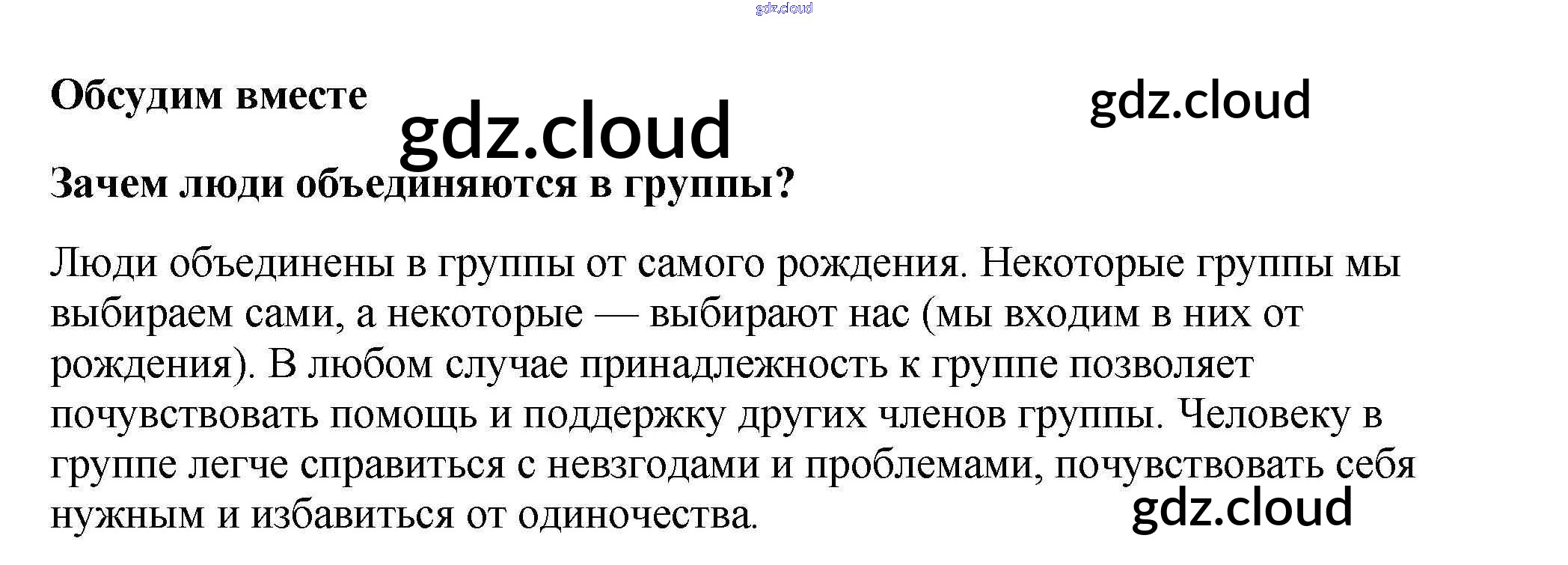 Обсудим вместе §13. Человек в группе по Обществознанию 6 класс Учебник Боголюбов Академический школьный учебник Просвещение, Просвещение