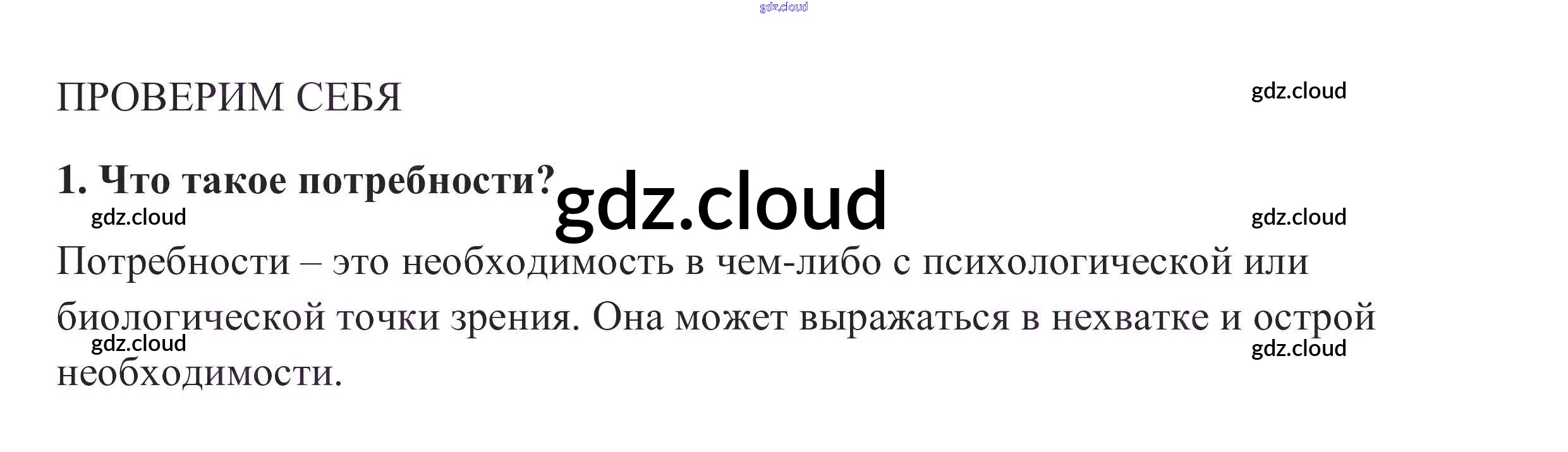 Проверим себя §4. Потребности человека по Обществознанию 6 класс Учебник Боголюбов Академический школьный учебник Просвещение, Просвещение