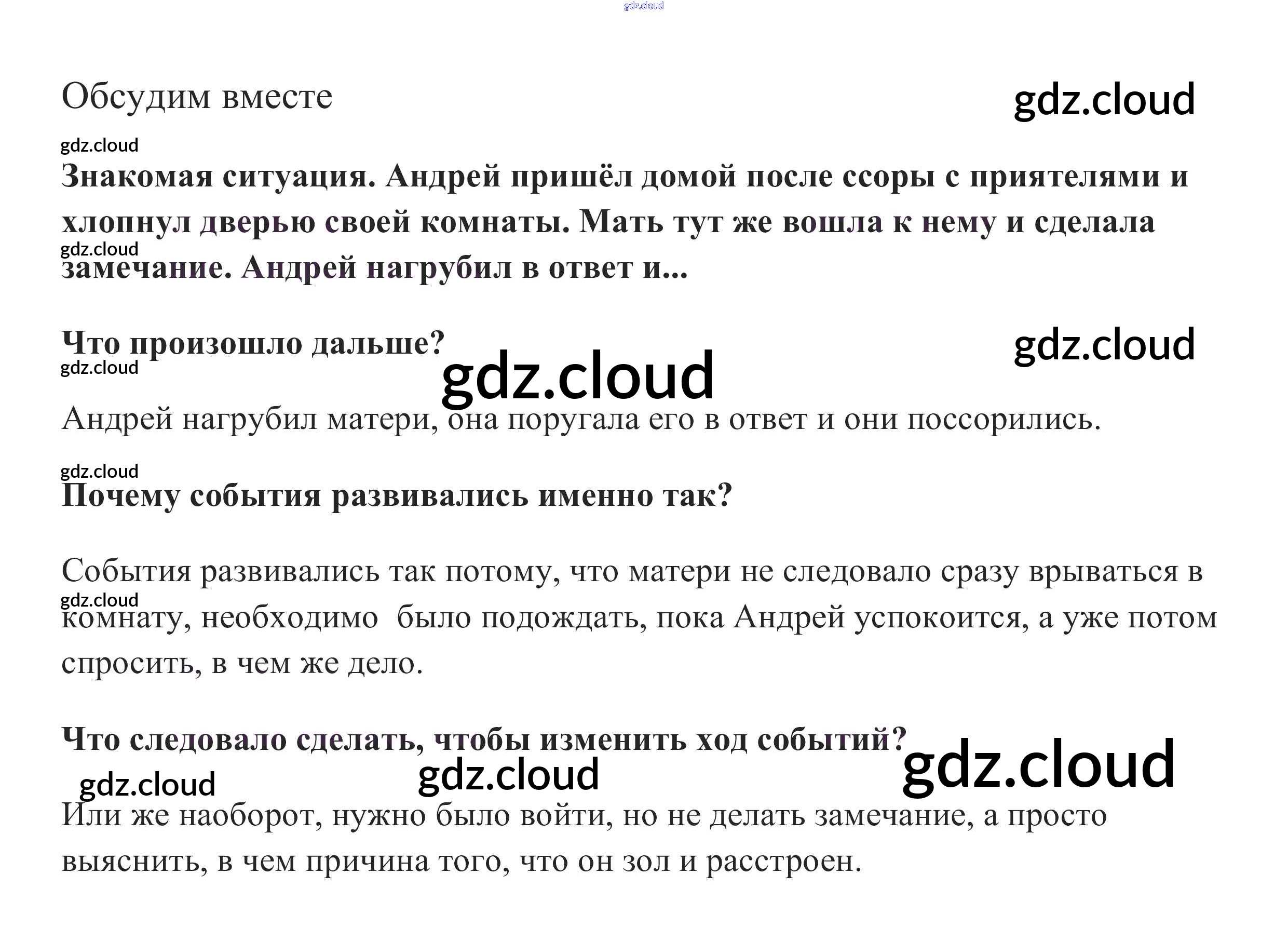 Обсудим вместе §9. Конфликты в межличностных отношениях по Обществознанию 6 класс Учебник Боголюбов Академический школьный учебник Просвещение, Просвещение