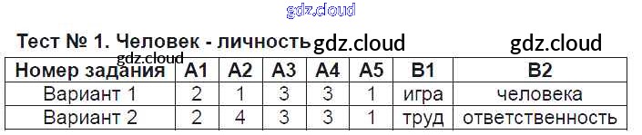 Ответ на задание Тест №1. Человек - личность Контрольно-измерительные материалы (КИМ) Обществознание за 6 (шестой) класс Поздеева 2017