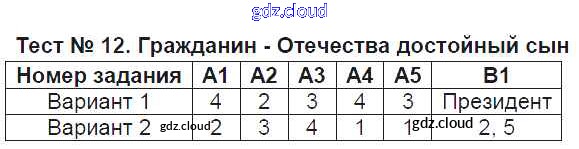 Ответ на задание Тест №12. Гражданин - Отечества достойный сын Контрольно-измерительные материалы (КИМ) Обществознание за 6 (шестой) класс Поздеева 2017