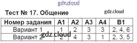 Ответ на задание Тест №17. Общение Контрольно-измерительные материалы (КИМ) Обществознание за 6 (шестой) класс Поздеева 2017